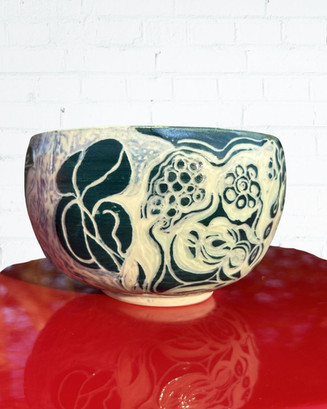 Caroline's ceramics carry the same conversation in a different form — literal patterns pressed into clay, beautiful and deliberate, asking the same questions mine do: what did we inherit? What do we keep? What do we finally set down?